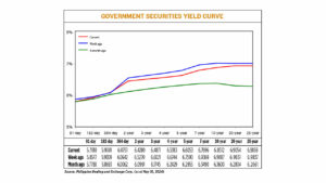 GS yields, which move opposite to prices at the secondary market, dropped by an average of 9.56 basis points (bps) week on week, based on the PHP Bloomberg Valuation Service Reference Rates as of May 10 published on the Philippine Dealing System’s website.