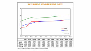 GS yields, which move opposite to prices, went down by an average of 3 basis points (bps) week on week, based on the PHP Bloomberg Valuation (BVAL) Service reference Rates as of Dec. 7 published on the Philippine Dealing System’s website.