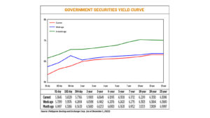 “These events may pull yields lower given the recently announced supply of bonds for the month of December which is significantly lower (only PHP 60 billion for the whole month), and Bangko Sentral ng Pilipinas’ November CPI indicative range at 4-4.8% (lower from previous print at 4.9%),” she said.