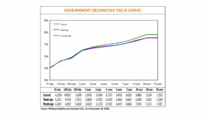 “Rates moved up across the yield curve by 250-300 basis points from a year-on-year standpoint. Similar to other markets both locally and globally, Philippine fixed income had a challenging 2022. However, this has put it in a decent position for much brighter prospects for 2023, given where yield levels currently are,” he said.