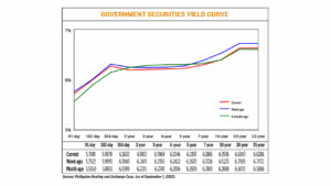 GS yields, which move opposite to prices, dropped by an average of 6.11 basis points (bps) week on week, according to the PHP Bloomberg Valuation Service Reference Rates as of Aug. 31 published on the Philippine Dealing System’s website.