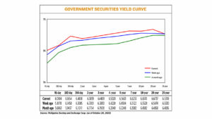 GS yields, which move opposite to prices, went up by an average of 8.25 basis points (bps) week on week, based on PHP Bloomberg Valuation Service Reference Rates as of Oct. 20 published on the Philippine Dealing System’s website.