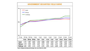 Bond yields, which move opposite to prices, fell by 1.38 basis points (bps) on average week on week, based on PHP Bloomberg Valuation Service Reference Rates data as of March 22 published on the Philippine Dealing System’s website.