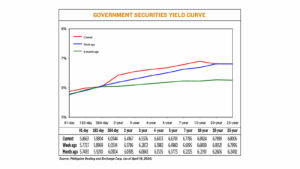 GS yields, which move opposite to prices, rose by 12.79 basis points (bps) on average week on week, based on PHP Bloomberg Valuation Service Reference Rates data as of April 19 published on the Philippine Dealing System’s website.