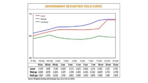 GS yields at the secondary market dropped by an average of 14.68 basis points (bps) week on week, based on the PHP Bloomberg Valuation Service Reference Rates as of July 14 published on the Philippine Dealing System’s website.