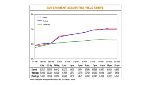 The yields, which move opposite to prices, fell by 1.43 basis points (bps) on average week on week, according to data from the PHP Bloomberg Valuation Service Reference Rates as of May 3 posted on the Philippine Dealing System website.
