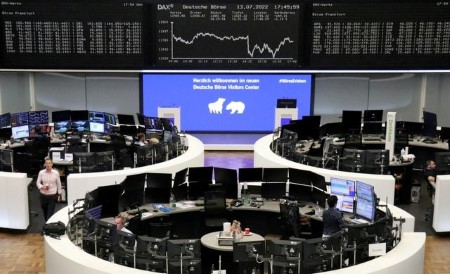 LONDON, July 14 (Reuters) – European shares dropped in early trading on Thursday and the safe-haven dollar was up after the latest red-hot US inflation reading increased investor caution about Federal Reserve rate hikes.